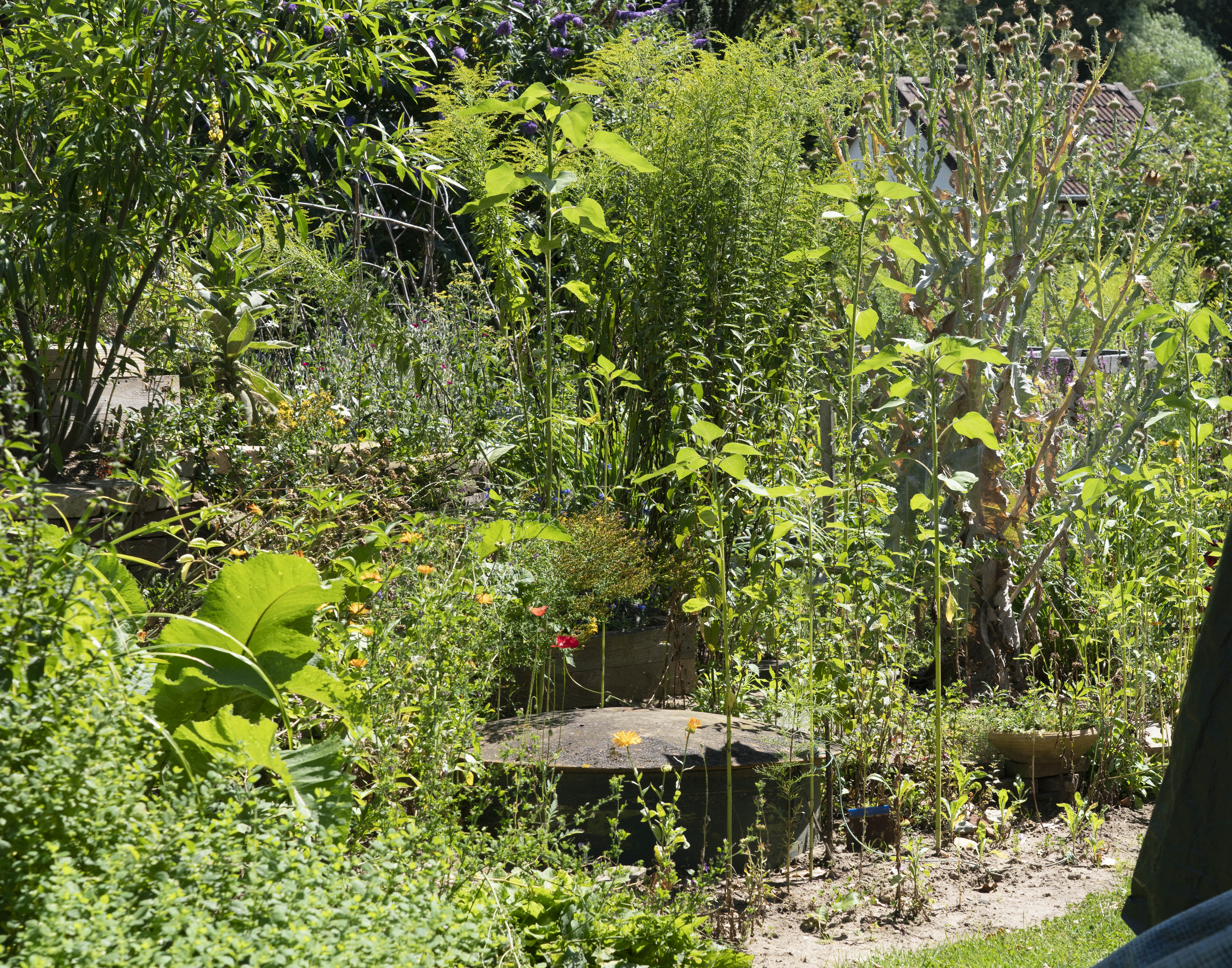 The Sun uncovered what appears to be a boarded up well at the property this morning. The iconic blue property boasts a lush green garden full of flowers, plants and apple trees.