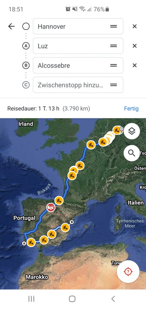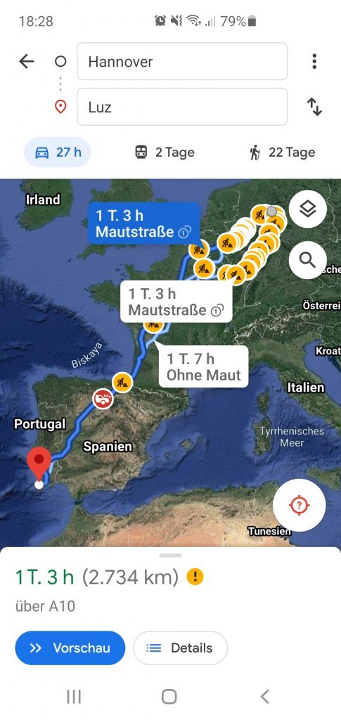 But route PDL to Hannover isn't recommended via spain. But it is also 13 years ago. No idea, if highways in portugal have been built up by these years.
