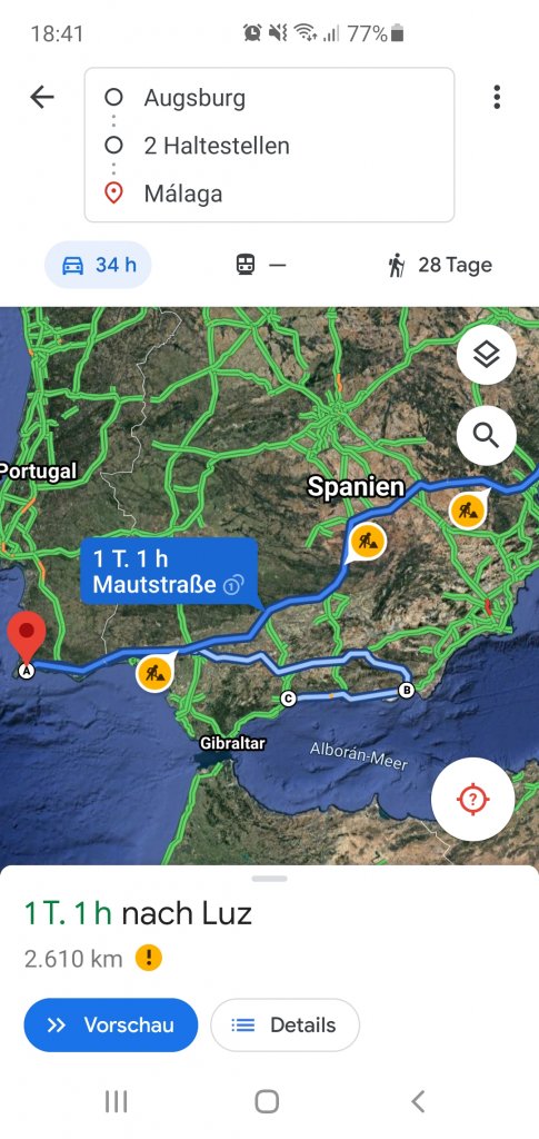 For what purpose did he need to look into a map? The Route from PDL to germany (Augsburg-Bavaria) via spain ain't longer, than via middle of Portugal. Okay, Malaga ain't the shortest way, but looking at a map for finding the exit to Malaga or Almeria seems odd to me. If someone knows southern europe highways, that would be him?!
