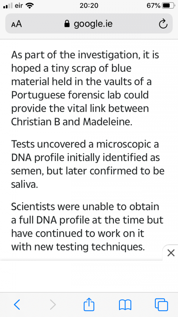 Only my op, If I was going to take a child I would want in and out and as far away from the scene as poss and in the shortest time, I dont think I would just walk through a town with said child in my arms, so many people knew CB , would he really take that risk ? and where was he taking her if this was the case ? he was living in his campervan at the time, or he could have had the other car, the yellow estate, I just honestly cant see this as something that happened, I honestly think she was taken out the door or window (with help? ) put in a car and gone asap, just MOO