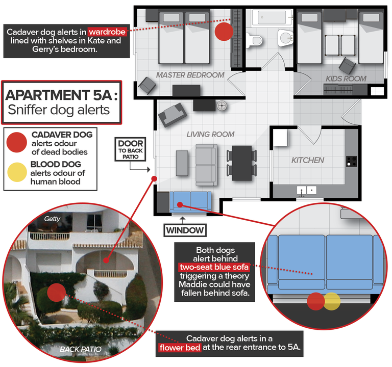 Where cadaver and blood dogs alerted in McCann apartment and rental car
