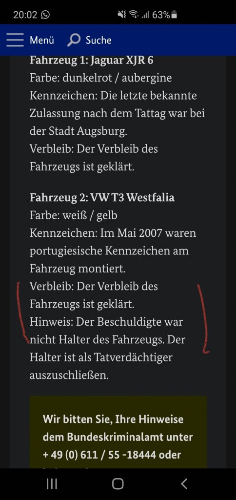 True, I thought the LE had said that they had traced the phone call to another pedophile who was also German? so could he maybe be in prison someplace and has since been tracked down by LE and he could be the main witness? maybe he has more info, CB would know obv who this was so prob said to the lawyer after it was put out in media that LE knew who it was?FF won't have access to that info. But he will have names given to him by CB.