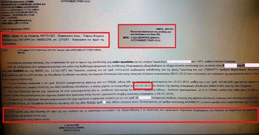 3. More specifically, in May of this year a person who initially refused to disclose their identity, contacted the team of the Grange operation, but who afterwards admitted of being a German national and is named L***, born in 1971, and mentioned that he has information and would like to aid the British authorities in their searches. The one in question, who uses the no. 6*** mobile phone, stated that he lives in an area of Attica and that he was recently released after serving a sentence of 2 years and seven months for an offence he allegedly committed in 2011 - most likely a case of smuggling illegal immigrants. He further stated that he must report once a month to a police station (which he did not know to name but it is believed to be the Omonia Police Department) and that he has been barred from leaving the country. He also stated that in Greece he maintains friendly relations with a German citizen, about 60 years old. So far, the information he has given voluntarily and without any financial or other consideration to the Metropolitan Police regarding the case has been cross-checked and is considered a reliable source.