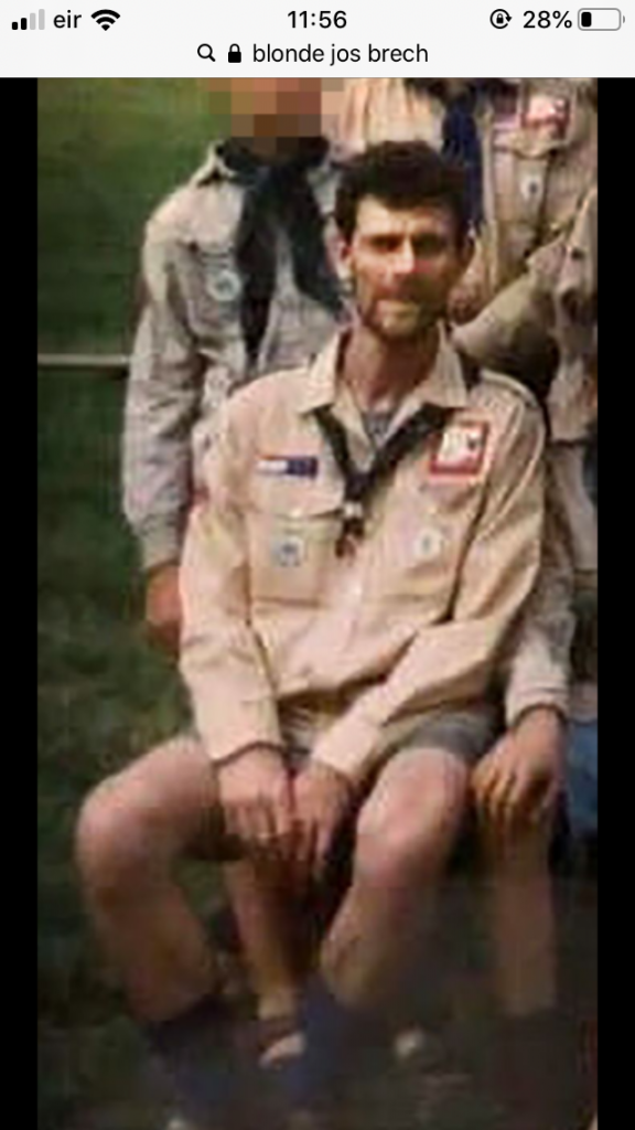 Profile of Joseph Theresia (Jos) Brech: white male, born 29 October 1962, 1.80 m tall, brown (grey by now) short, wavy hair, normal/thin posture, large, in his early years he worked at different scouting camps (for children) across Europe.