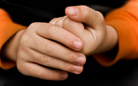 Clasping and squeezing hands together is a self-pacifying gesture. A person who does this is uncomfortable, maybe even nervous or fearful. He's trying to assure himself, “Everything's going to be alright.” A variation of this is rubbing the wrist.