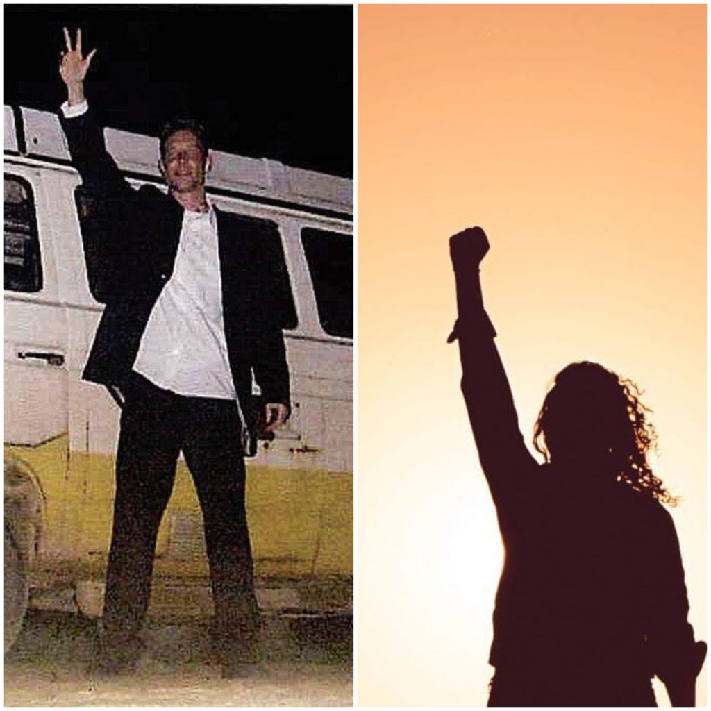 The "V" with two (!) fingers seems to be his usual singn yes!