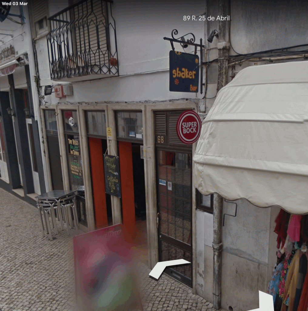 The Shaker Bar is at R. 25 de Abril 68 Lagos, Trivento.
