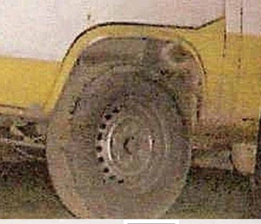 And again, the area around the front wheel of the van looks very anomalous to me! Where did the holes in the rim vanished into?