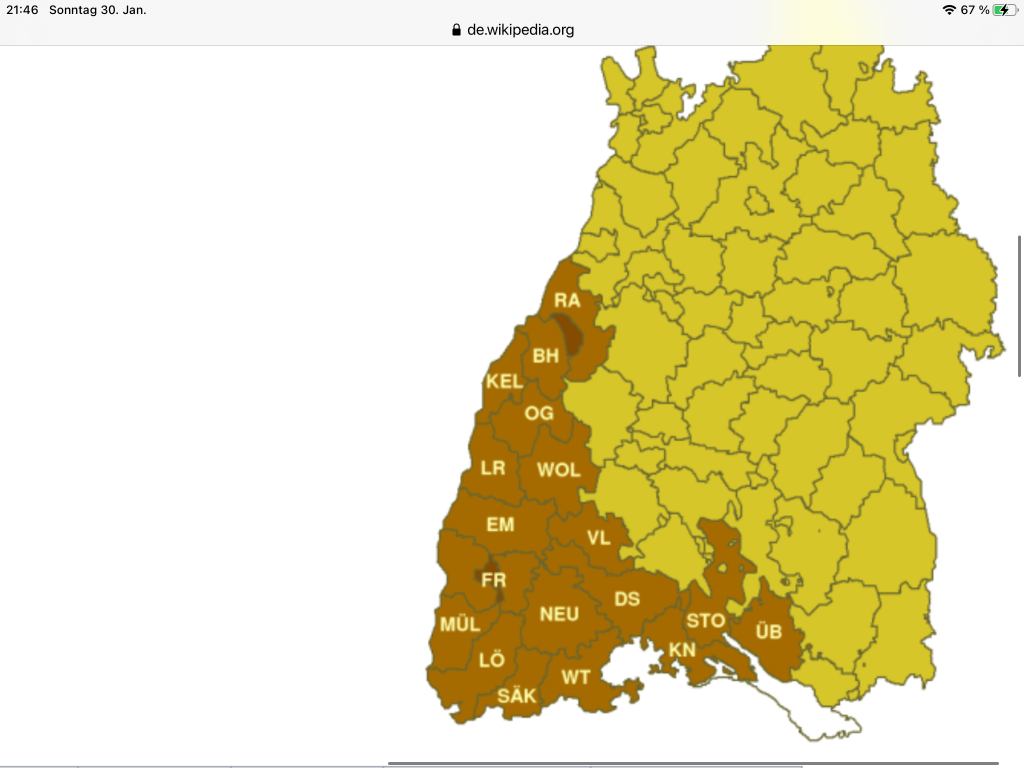 The brown part is Suedbaden. LÖ means Lörrach, so it’s def. Suedbaden