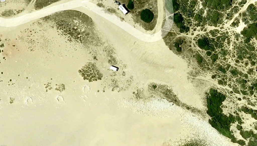 On Praia do Barranco on 22/06/07, there looks to be to be a camper van with a snub bonnet (the one closest to the beach) that appears to be consistent with the dimensions of CB's VW Westfalia. (Resolution of pic not great due to file size limit. You'll have to Download Google Earth Pro on desktop if you want to view the original for yourself)
