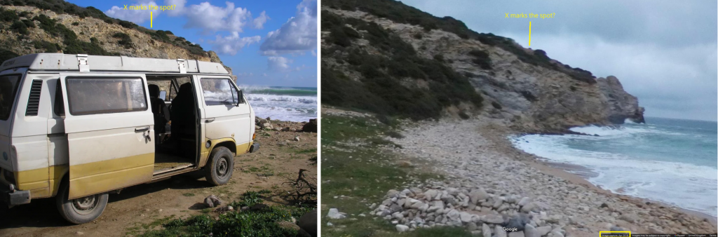 According to several websites, Barranco Beach is one of 8 officially designated nudist beaches in Portugal. Given what we know about CB's habits, could it be that his reason for parking the VW right slap-bang on the sand was more to do with covert photography than selling drugs to hippies?