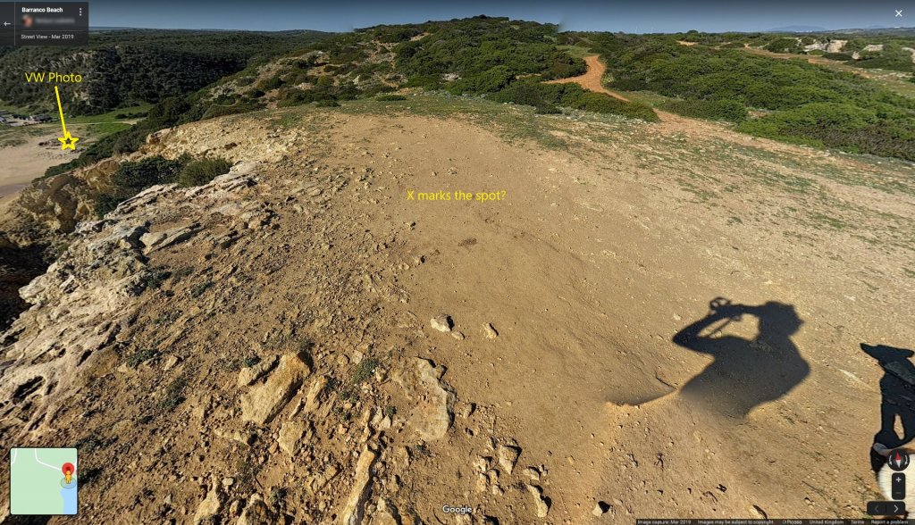 Here's a photo from March 2019 depicting the clifftop location of the X marks. They don't actually seem to be there on the ground, so maybe the X marks were actually drawn onto the 2018 satellite photo itself, for some reason?