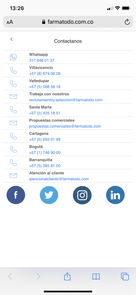 3) What looks like Farmatodo's contact page