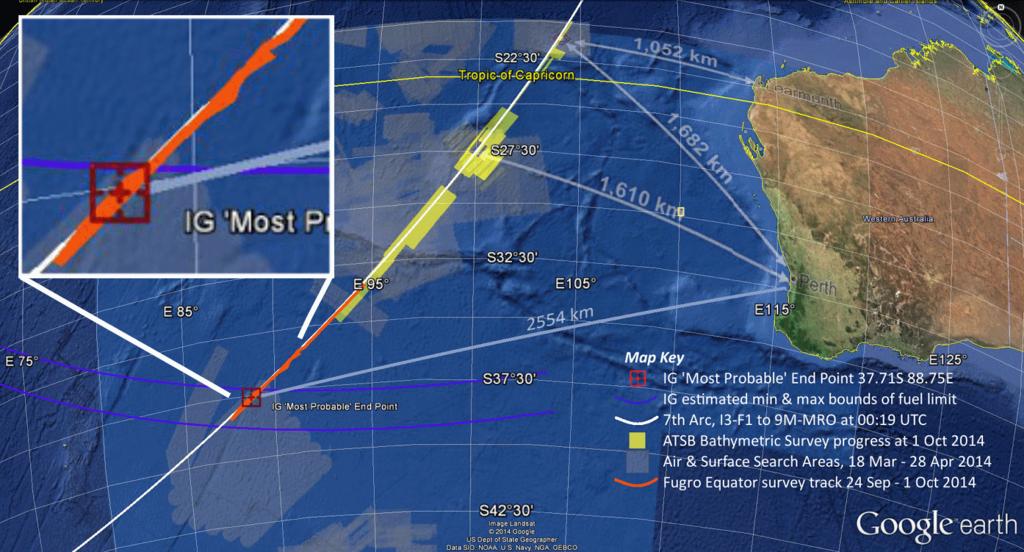 Duncan Steel: "Well, it’s a new (update) report from the ATSB, but it doesn’t contain much actually new, because the Independent Group (IG) had already reached essentially the same conclusions and published them here a couple of weeks ago. One wonders whether the two might be related?.... Below we (the IG) show how our recommended end point relates to the location that the ATSB has belatedly arrived at, after wasting millions of dollars surveying a wide area much further NE."