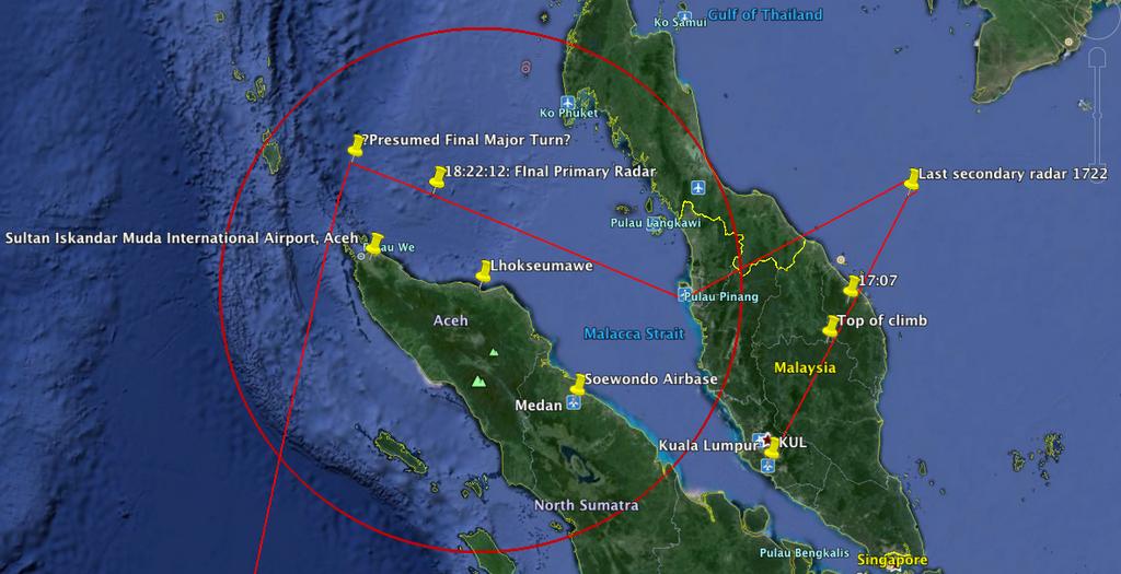 (4) the northern Sumatra radar operation is focused on the Straits rather than the lightly traveled passage between Sumatra and the Andaman Islands, so the equipment was not focused along the path MH370 took.