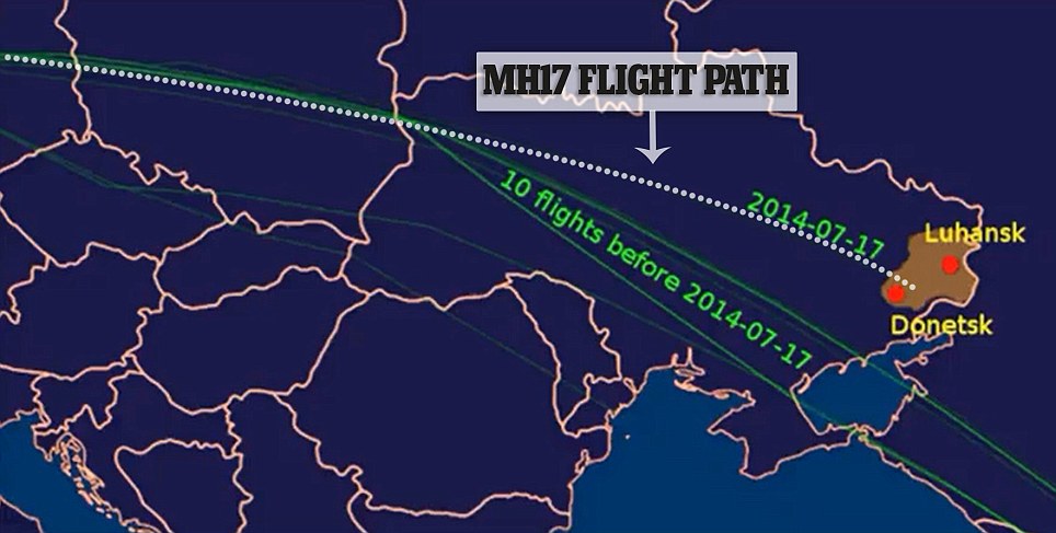 When compared to 10 previous flights, this map shows that the route of MH17