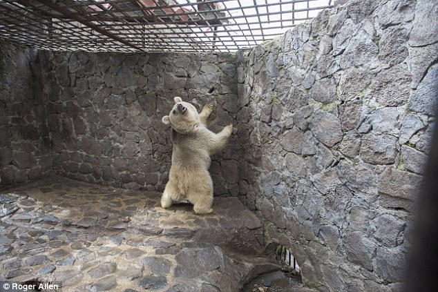Walled in by concrete, Masha the bears only glimpse of the outside world was through the metal grille above her head.