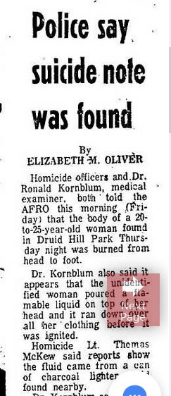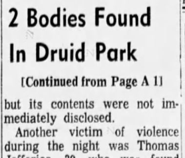The deceased subject was found in a wooded area on the grounds of Druid Hill Park (northwest corner). Likely suffering from depression, the decedent had apparently committed suicide. Believed to have been married, influenced by Christianity, and may have known how to write in short-hand.