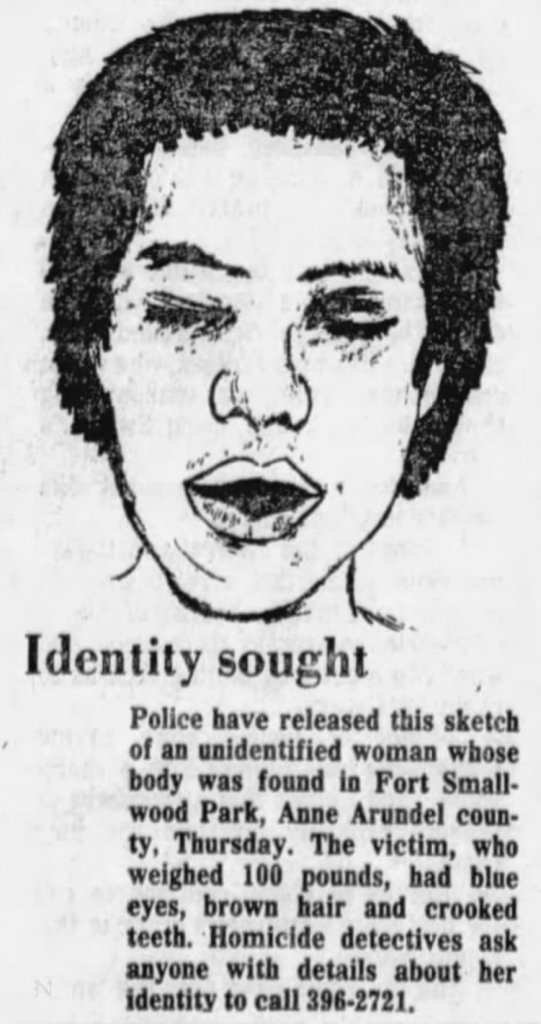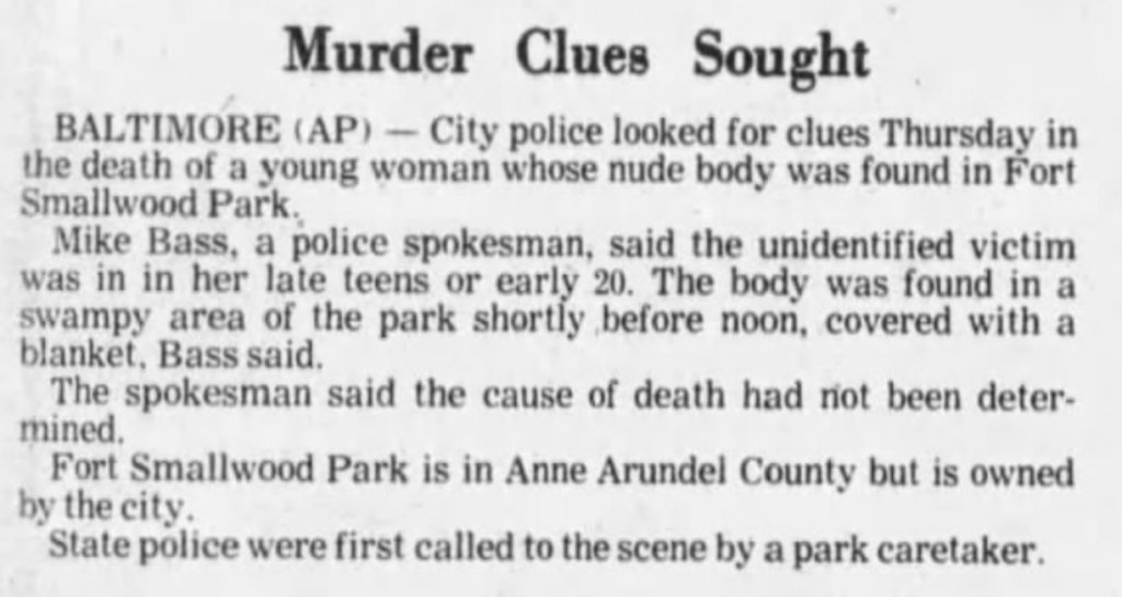 The victim was recovered from Cabana Road in Fort Smallwood Park on December 6, 1979.