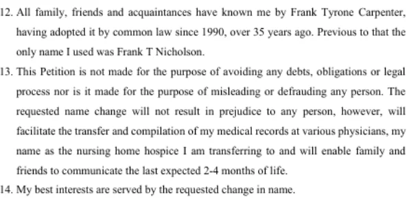 He forgot to mention that the name he used before Frank T. Nicholson was Frank Thomas Christensen. The name change hasn't gone through. It's held up in court.