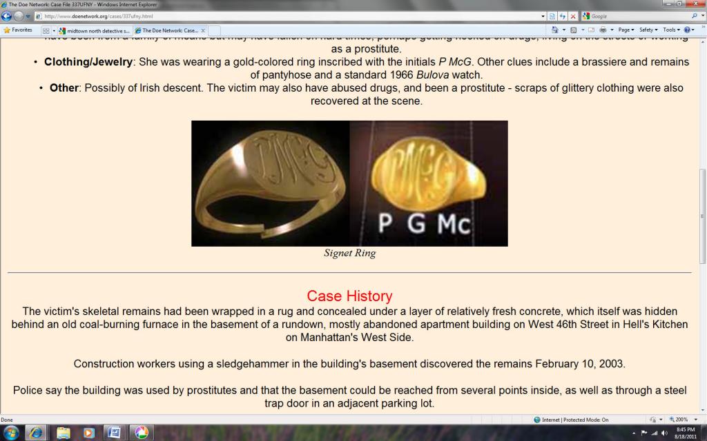 crossing fingers, not holding breath. Midtown Jane Doe has finally given up some DNA -- news I've been waiting to hear for 5 years. If it doesn't match or DQ, manual compare is next -- dentals will be compared again as well. (I am so frustrated with LE on this one. That was done, I was told, YEARS AGO, before the DNA comparison was requested, and they tried extracting DNA)