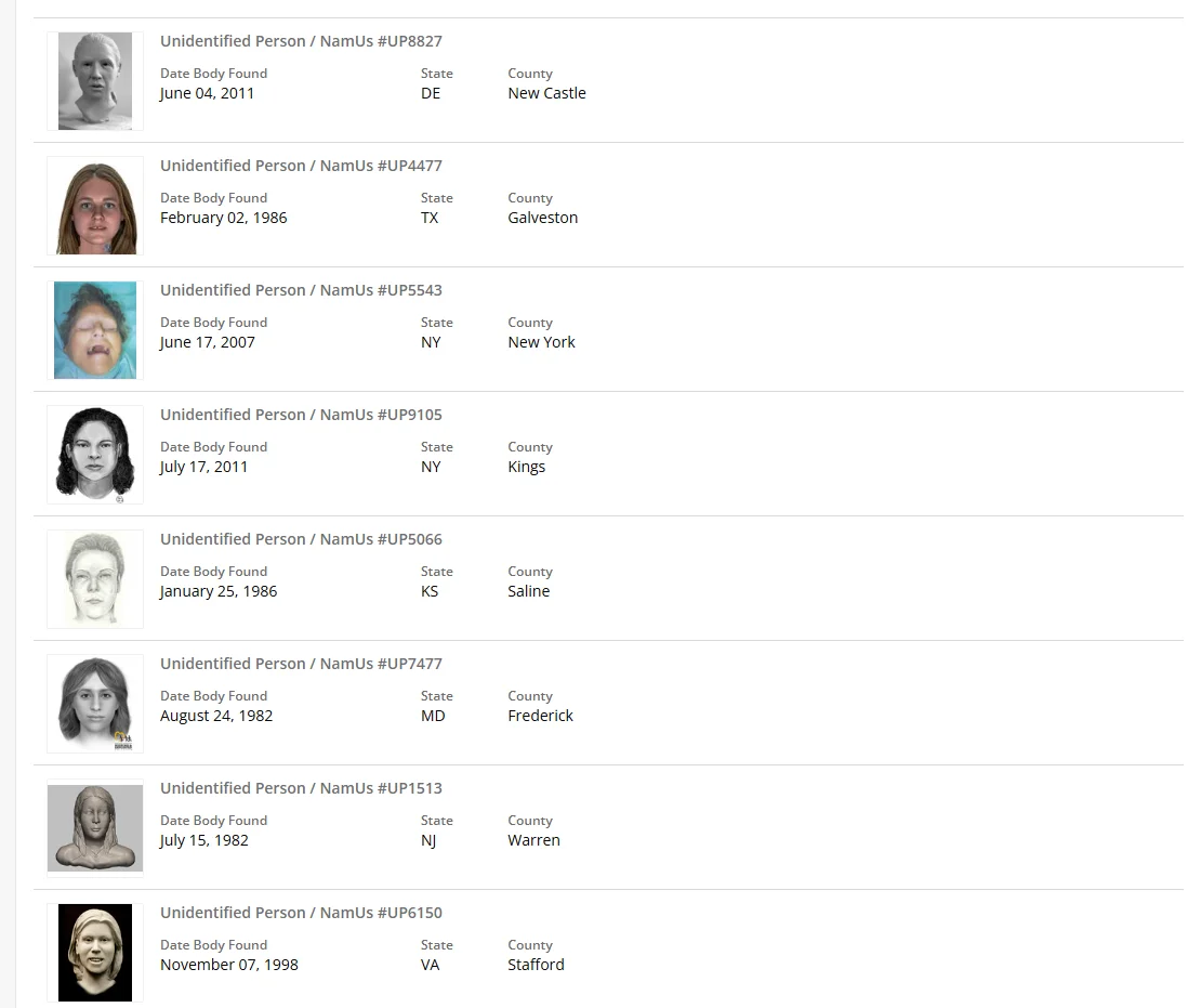 The first woman, 22-year old mother Megan Waterman, was identified, followed by Maureen Brainard-Barnes, 25; Amber Lynn Costello, 27; and Melissa Barthelemy, 24. Maureen thought her sister