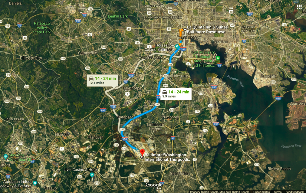 Hotel, in relation to Baltimore/Washington International Thurgood Marshall Airport (BWI)