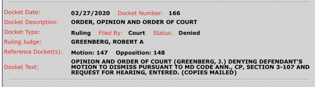 Judge: Defense argued that 5 year deadline of being ruled incompetent began when Hoggle was just charged w misdemeanors ran out in January 2020. Greenberg says nothing in Md law allows defense to “tack on the District Court incompetency.”