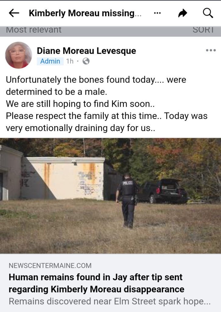 Police in Jay are investigating after human remains were found in the woods near Elm Street, raising hopes that the discovery may shed new light on the decades-long search for Kimberly Moreau, who went missing 38 years ago.