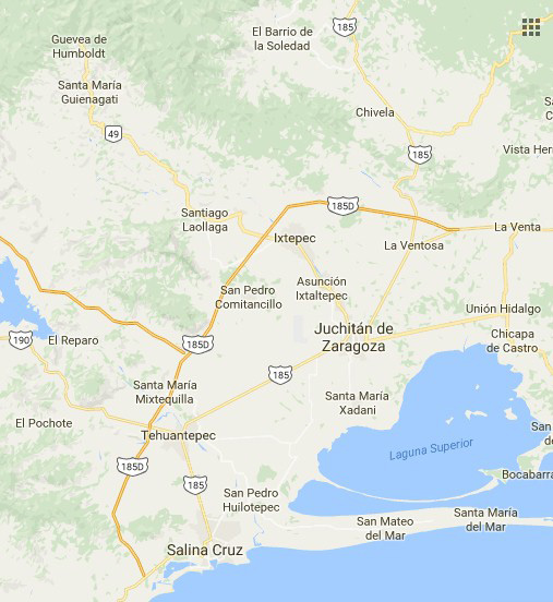 According to my googling, 185 splits north of the city of Juchitan. Santa Maria Guienagati seems to be on the branch to the west of the 185 leading from Lagunas Crossing. So I would assume the truck would have crossed over to the other 185 on a road running across the top of Juchitan, as shown on the photo and link.