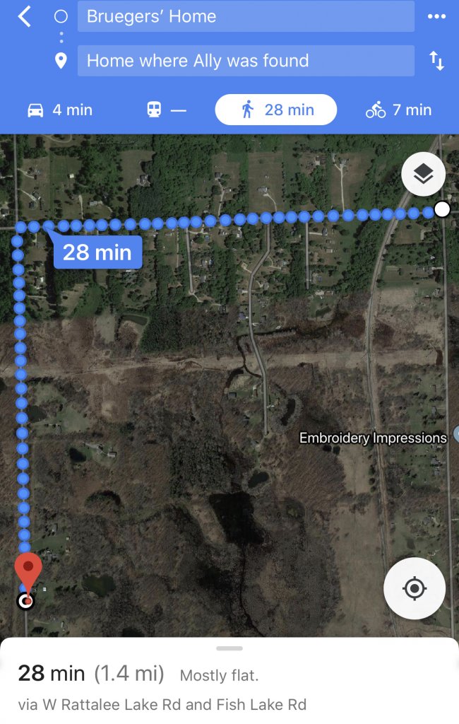 However, that’s assuming that Ally took the route as shown in the first attachment: That she took the shortest and quickest route from her home to the house where she was found.