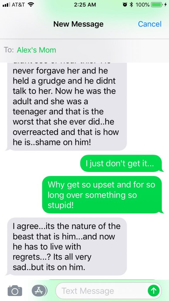 - “He never forgave her and he held a grudge and he didn’t talk to her
