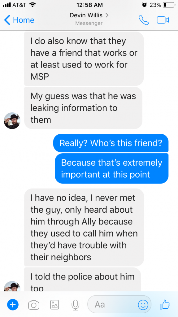 I noticed that the conversation with the investigator in the fourth screenshot is dated Dec. 19, 2016. So I suppose it’s safe to assume LE has been in possession of these screenshots for over a year and a half.