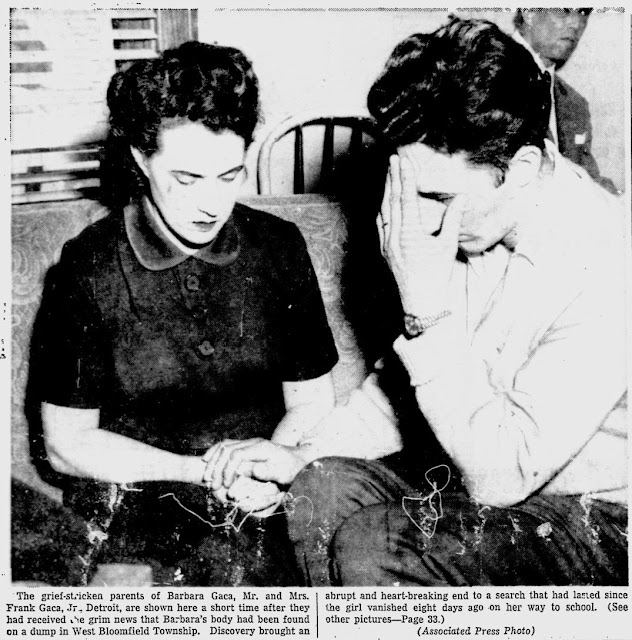 Gaca disappeared March 24, 1955, while walking from her east-side Detroit home to school, six blocks away. A search by hundreds of people found nothing until a week later, when her body was found in a dump in West Bloomfield Township, 25 miles from her home. She had been raped and strangled.
