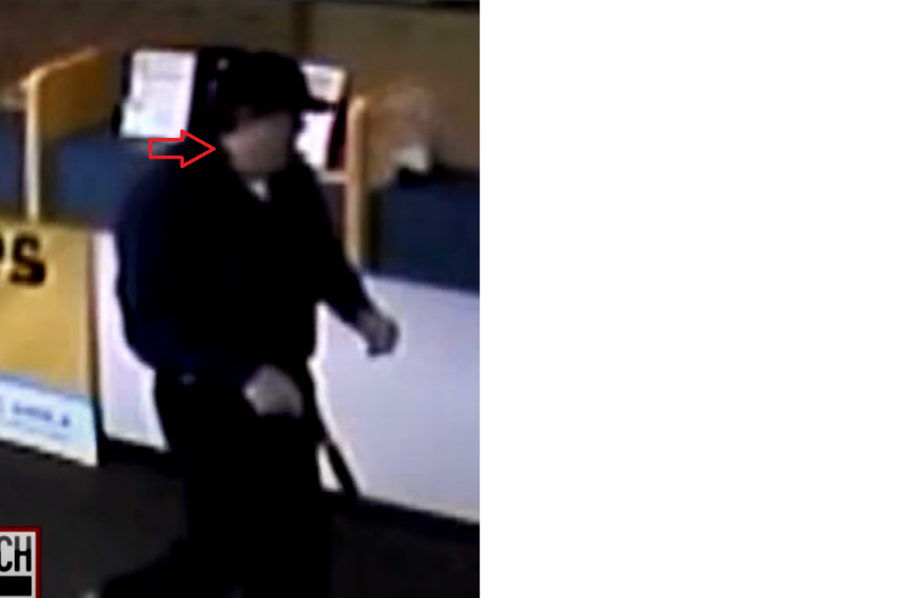 Great to have you here Kell1, verified law enforcement, wonderful. When he leaves the customer counter after the shooting he appears to have tan/flesh coloured fabric covering that side of his face at least (for the camera perhaps?), it totally blocks his profile there. He's got very thin gloves on too, you can see the marking on the wrists. Is it some kind of clue that he takes on a stooped crouching stance when he goes to look around the door? That strikes me as strange, something learnt perhaps, what's the point of that in this office?