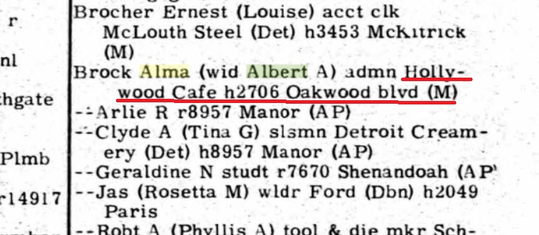 Paul Borman, who purchased the Hollywood Cafe in 1935, sold the business to Albert and Lottie Brock in 1940.