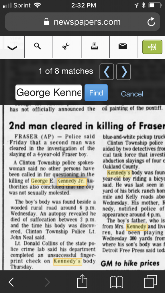 Couple other articles, talking about how George’s father found out and then clearing a second man