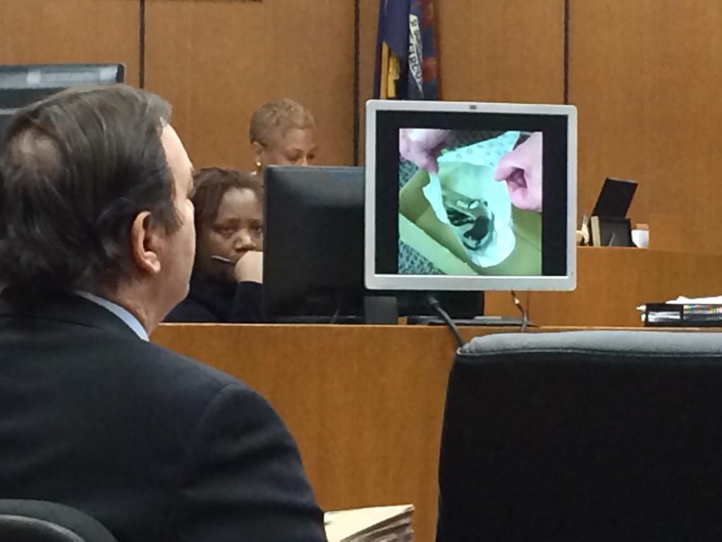 Aunt Gwendolyn testifies on cross that Jane had reached her hand up to adjust garage door and cut her hand. May explain her blood in garage