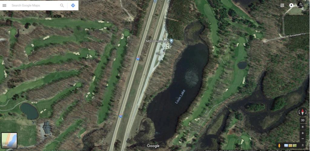 This is Loon Lake and the rest stop is visible. At least I suppose that is the rest stop where the incident occurred. It's the only one in the area. Notice how wooded it is behind the rest stop going towards the lake. The killer would have likely gone there rather than across the highway.