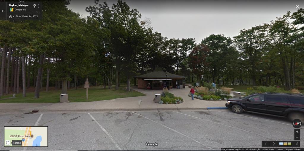 The rest stop itself. Looks like pretty much every highway rest stop in the state of Michigan. I don't know how much it might have changed since 1979 but isn't it far more likely that the killer ran into those woods in the background rather than across the highway and risk being seen? Who would walk along the highway and get into a police car after having butchered someone 20 minutes to a half-hour before and still carrying the weapon and not knowing if the cop who is stopping for him has gotten word of the murder yet? I don't think it could have been McGawley. But that leaves the question of who it was and has he killed since and where?