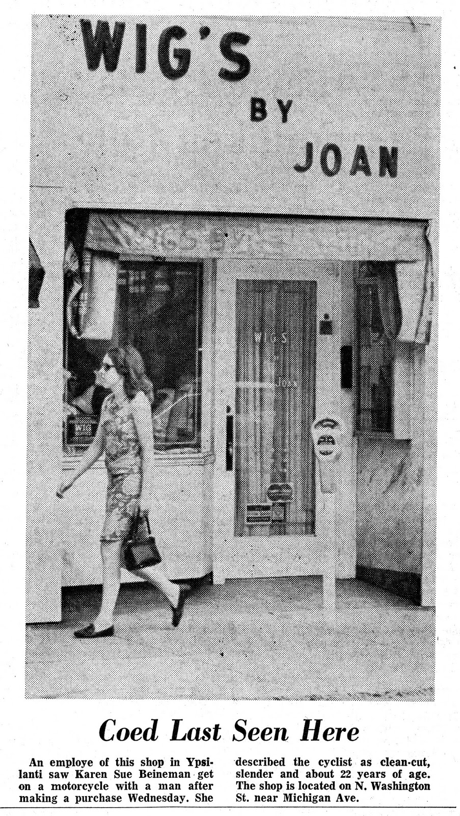 Karen Sue Beineman, age 18, Murdered 23 July 1969 in Ypsilanti, Michigan