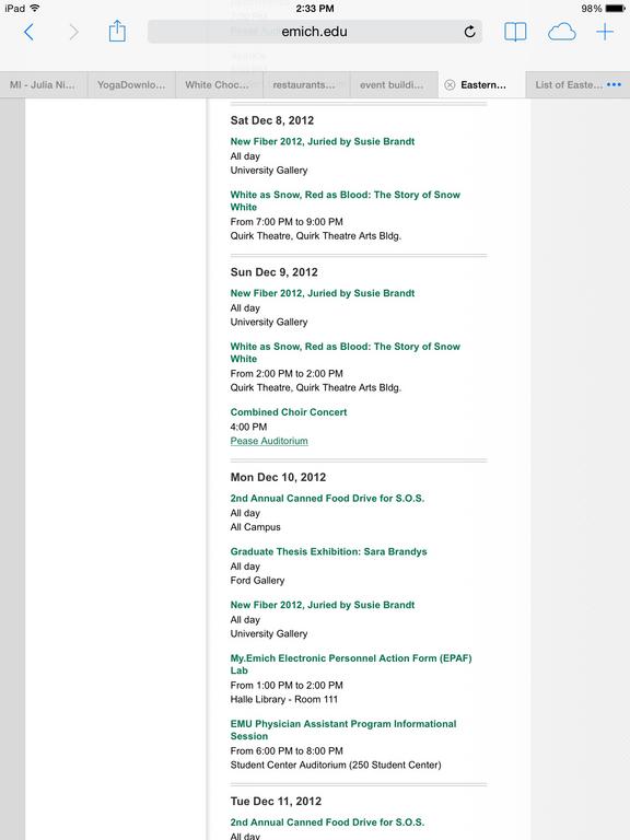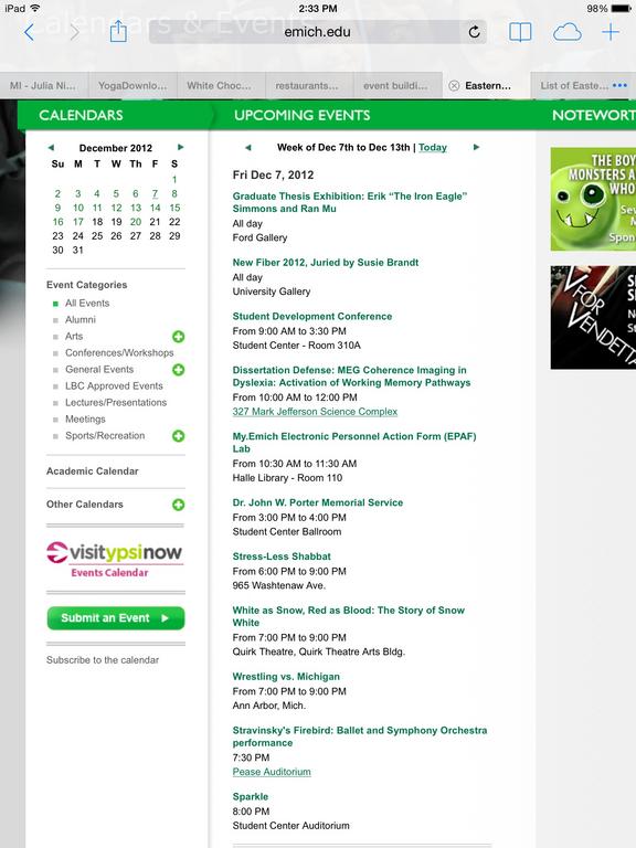 Here is a list of campus events that occurred the weekend Julia was murdered (you may have to go back a few years in the calendar from this link, but I will post some screen shots as well).