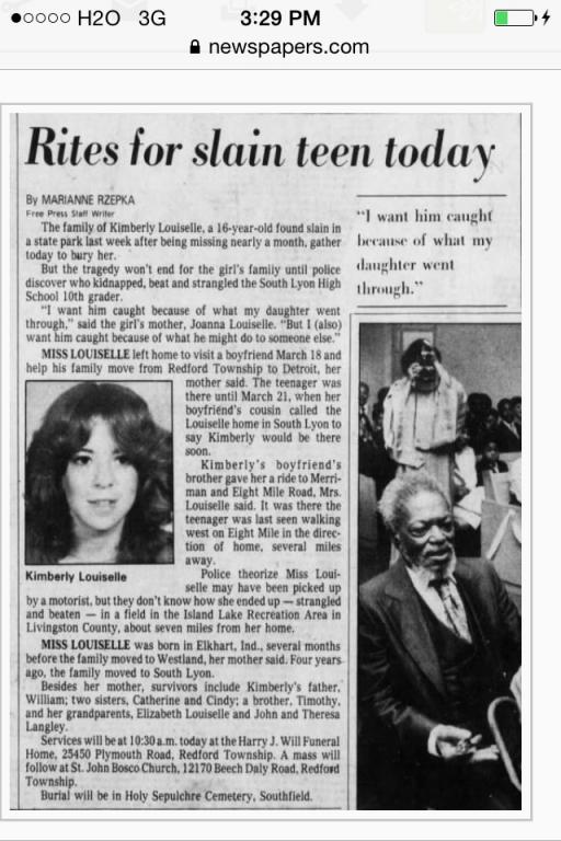 Kimberly Sue Louiselle was last seen on 8 Mile Road near Merriman (either Livonia or Farmington Hills depending which side of 8 mile she was on). She was hitching a ride back to her home in Green Oak Twp near 8 Mile and Rushton.