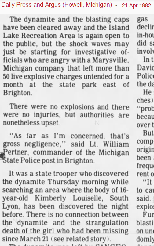 There were oil rigs on a dirt road off of Pontiac Trail on your way into town coming from Kensington. That was a few mails away from where Kim was found though.