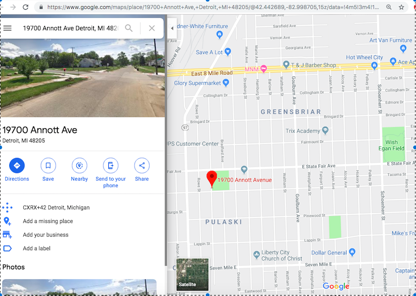 Map showing address where slain bf's body found (see screenshot) in 48205