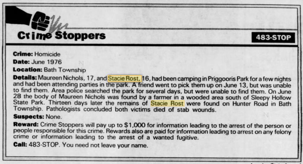 This is the same Bath Twp that Chris Temple would vanish from in the spring of 1990