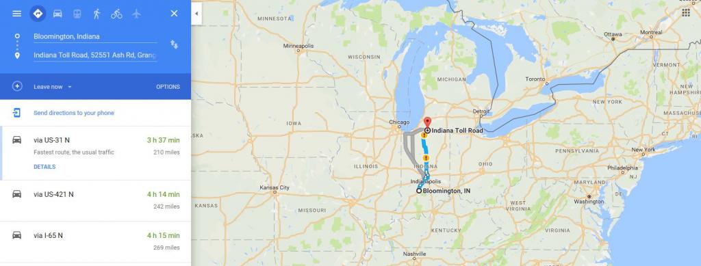 the distance between bloomington, indiana and indiana toll road is approximately 3 to 4 hours, less than 300 miles.