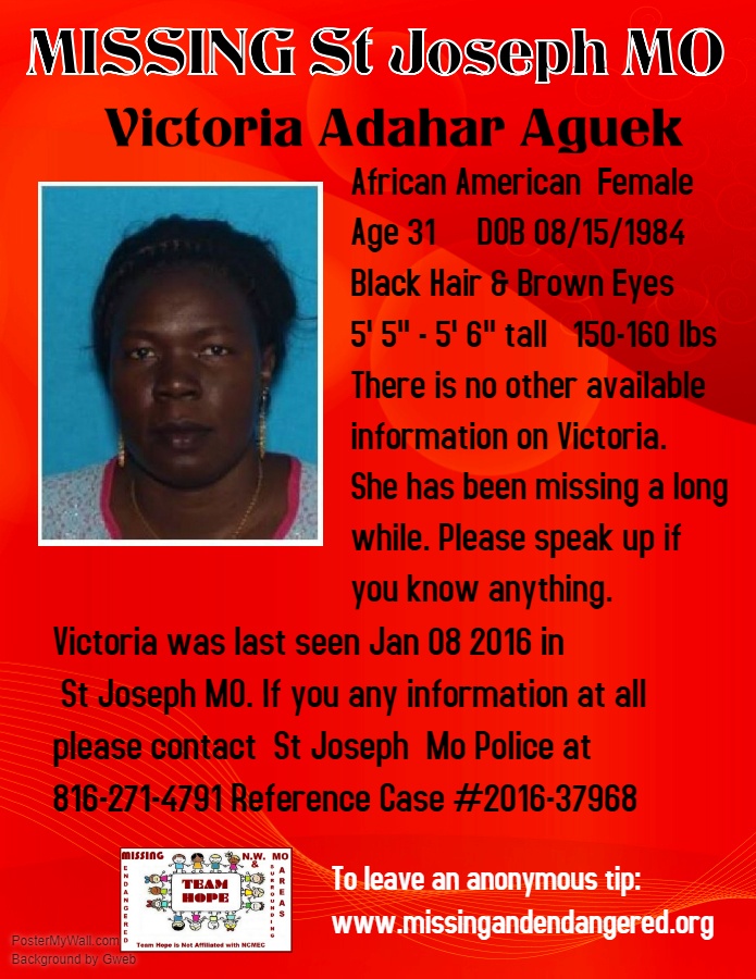YaYa_521 Retired WS Staff Joined Jan 29, 2019 Messages 16,708 Reaction score 48,850 Aug 11, 2021 #4 Victoria's WS thread. MO - MO - Victoria Adhar Aguek, 31, St. Charles, 8 Jan 2016
