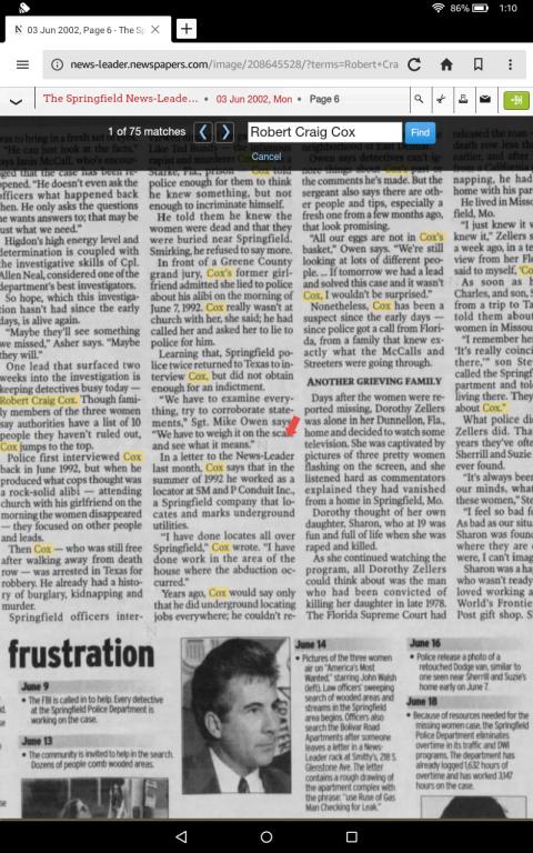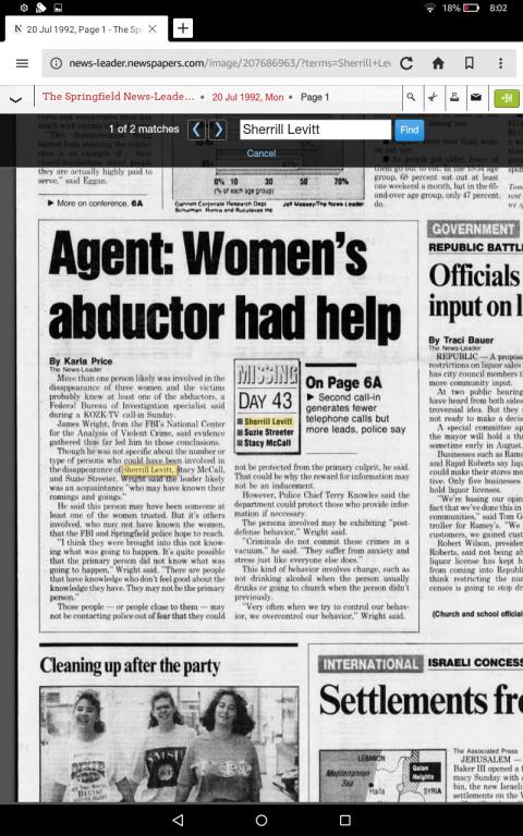Garrison was believed enough....:drumroll:..... that a gag order concerning the three search warrants was issued by a judge.“…certain aspects of the information we received fit with other (private) aspects of the case,” Springfield Police Capt. Todd Whitson said. Whitson said the gag order was rare, but he could not say why it was issued,“other than to say there is such an order, and it governs the operation and everything related to the operation out here.” Added Webster County Sheriff C.E. Wells:“We can’t tell you anything about it until the order’s lifted.”