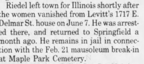 Wait a minute. Please clarify something. You're saying Mike and Joe fled to IL in March, sometime between the 25th and 27th 1992. Did they then return to Springfield before the crime against the women occured? Because their alibi as I have always understood it was, that they (Mike and Dusty) were at the concert, the night of June 6th, 1992, and then went to Mike's apartment and crashed, and that Mikes sister verified their alibi by stating that she came home after work to find them there and Dusty passed out in her bed.Things you got wrong.